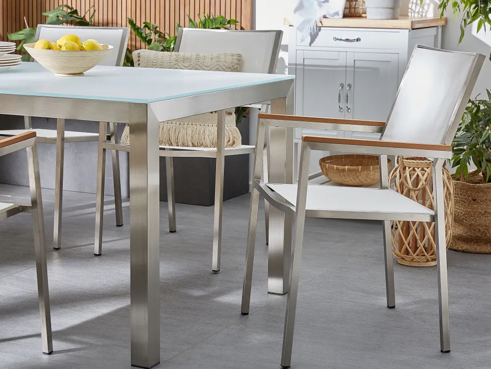 Best Beliani 6-Istuttava Ulkoruokailuryhma Poltettu Graniittitaso Tekstiilituolit Musta/Beige Grosseto