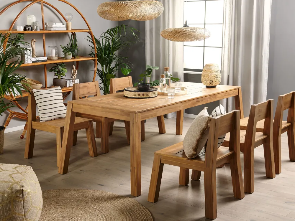 Best Beliani 6-Istuttava Vaalea Akaasiapuinen Ulkoruokailuryhma Tuoleilla Livorno