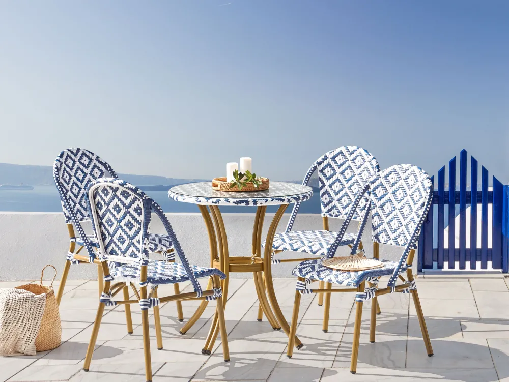 Clearance Beliani Puutarhakalustesetti 4-Istuttava Sinivalkoinen Rifreddo