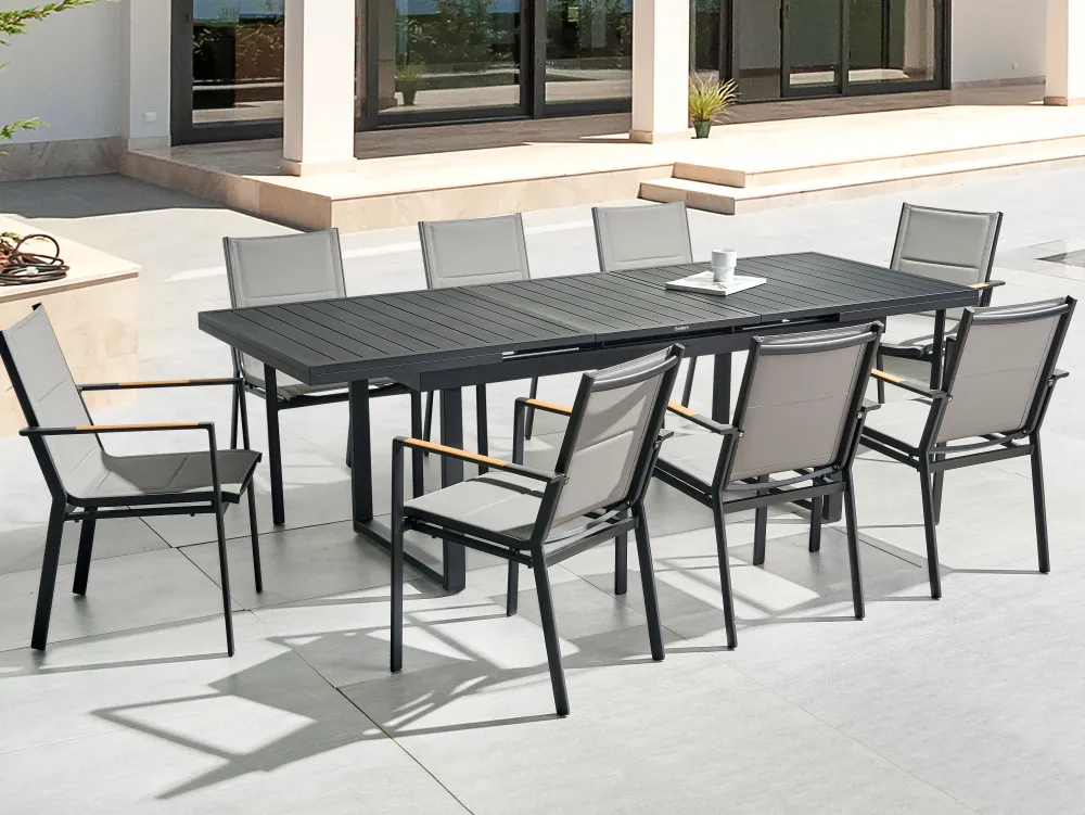 Discount Beliani 8-Istuttava Ulkoruokailuryhma Alumiini Musta/Harmaa Valcanetto/Busseto