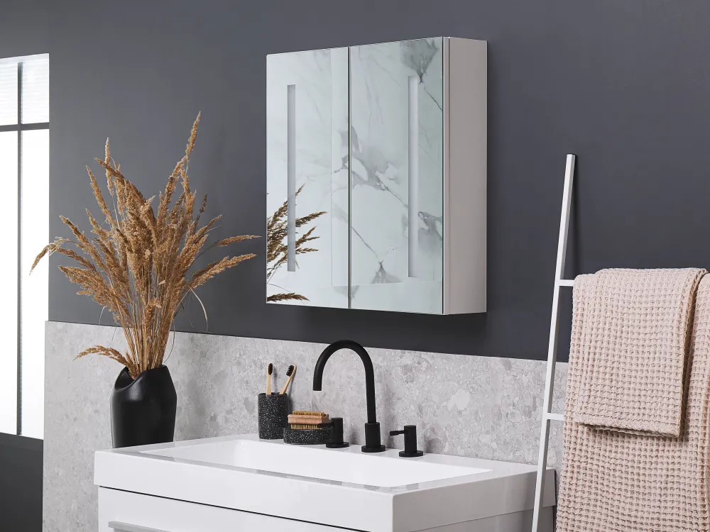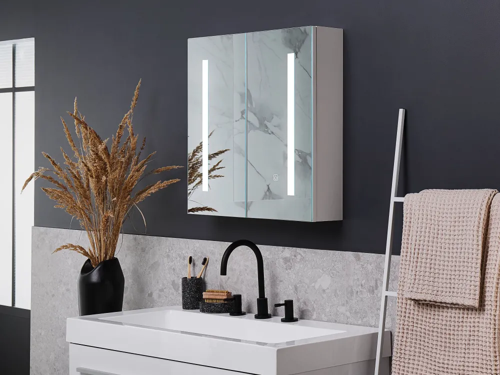 Store Beliani Peilikaappi Led-Valo Valkoinen 60 X 60 Cm Chabunco