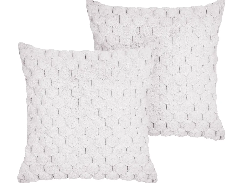 Tekstiilit<Beliani Koristetyyny Tekoturkis Valkoinen 43 X 43 Cm 2 Kpl Purslane