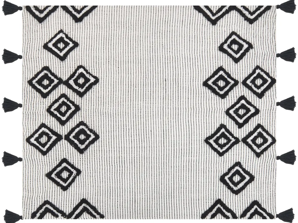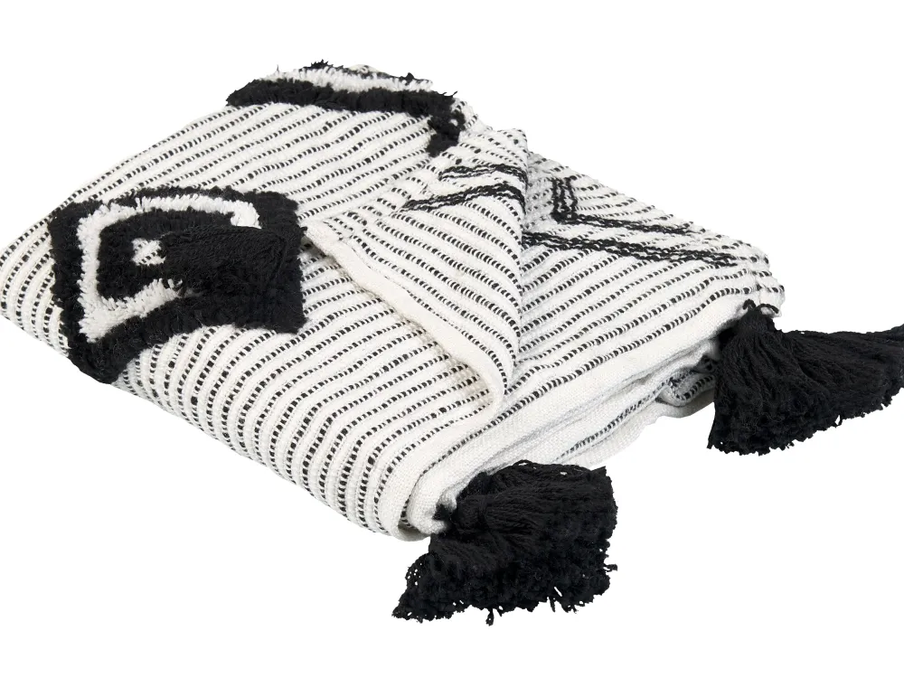 Tekstiilit<Beliani Torkkupeitto Valkoinen/Musta 130 X 150 Cm Saatli
