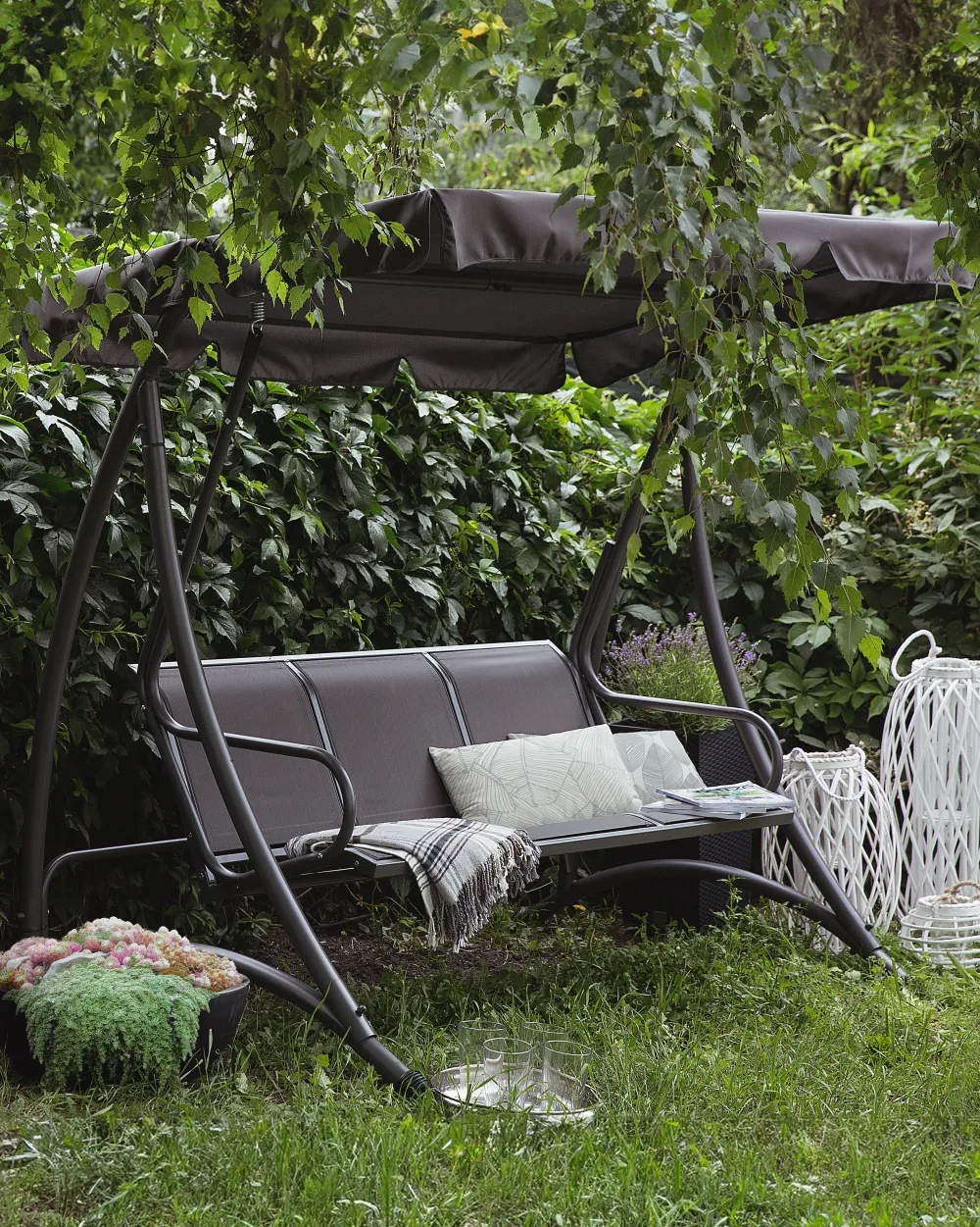 Ulkokalusteet<Beliani 3-Istuttava Puutarhakeinu Harmaa Bogart