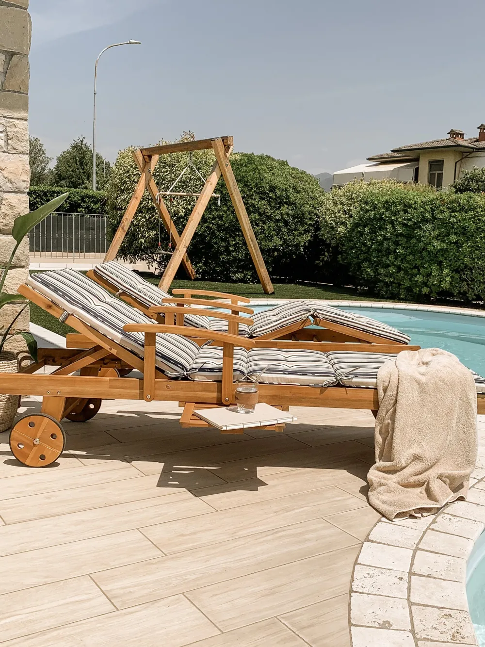 Ulkokalusteet<Beliani Akaasiapuinen Aurinkotuoli Raidallisella Pehmusteella Java
