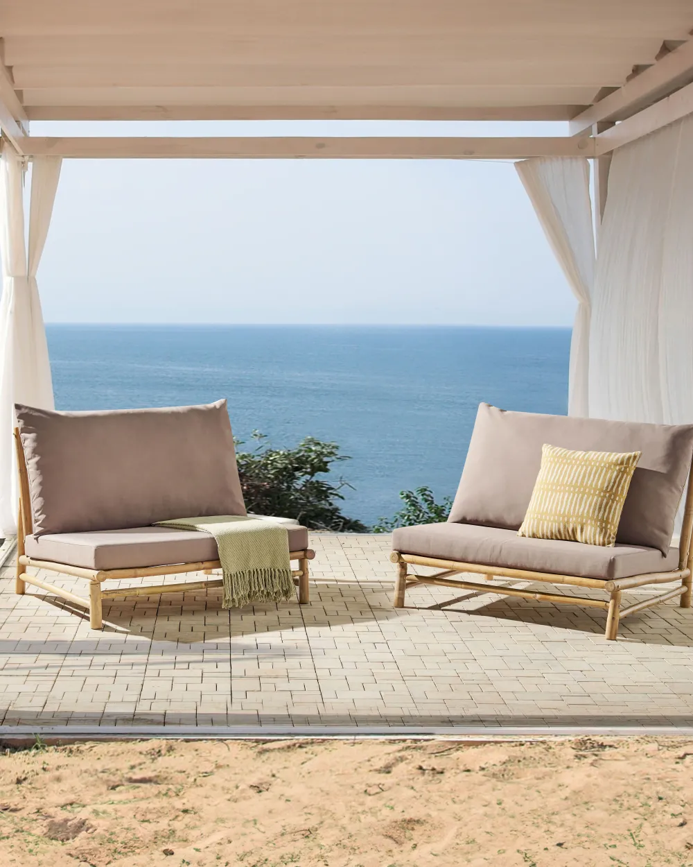 Cheap Beliani Puutarhatuoli Bambu Vaalea Puu/Ruskeanharmaa 2 Kpl Todi
