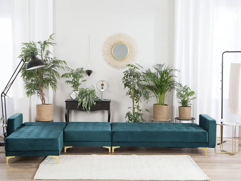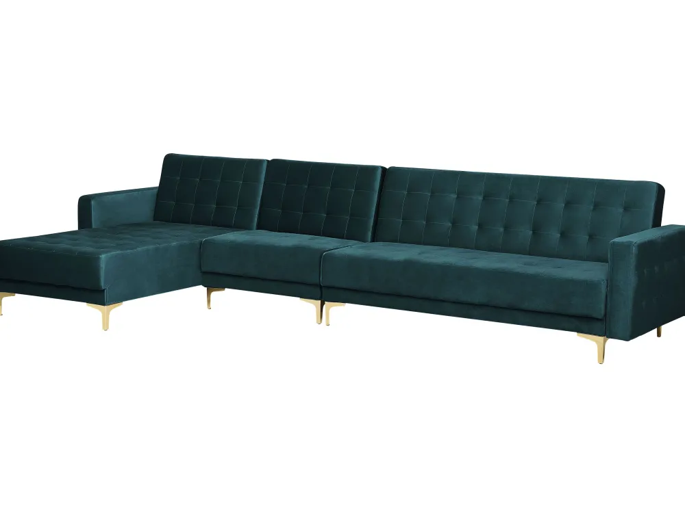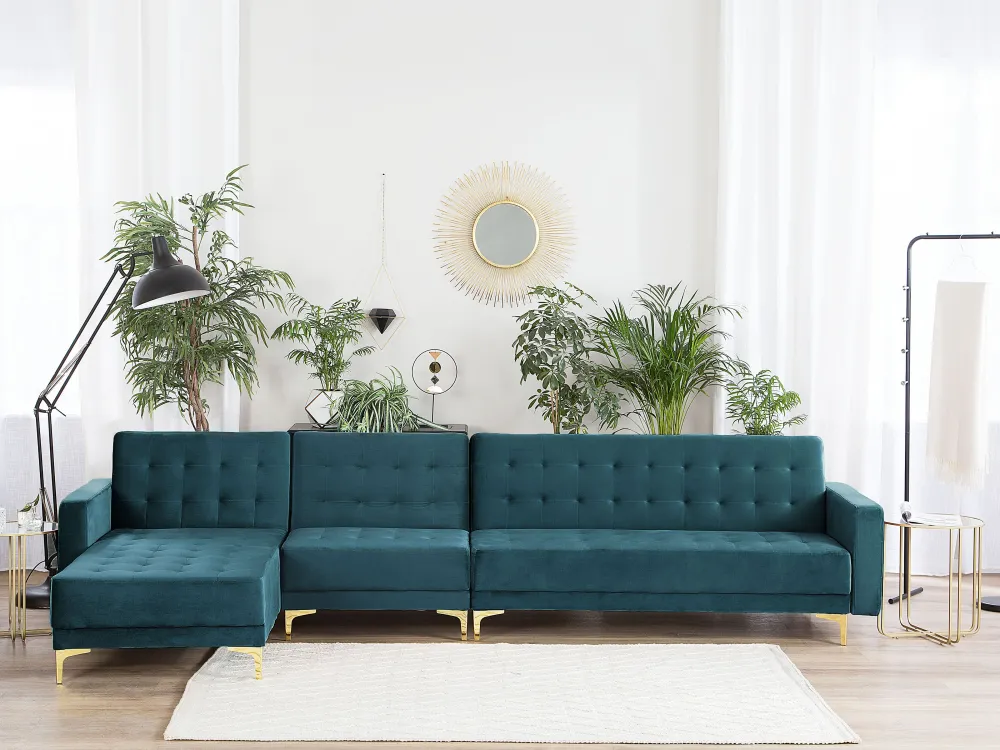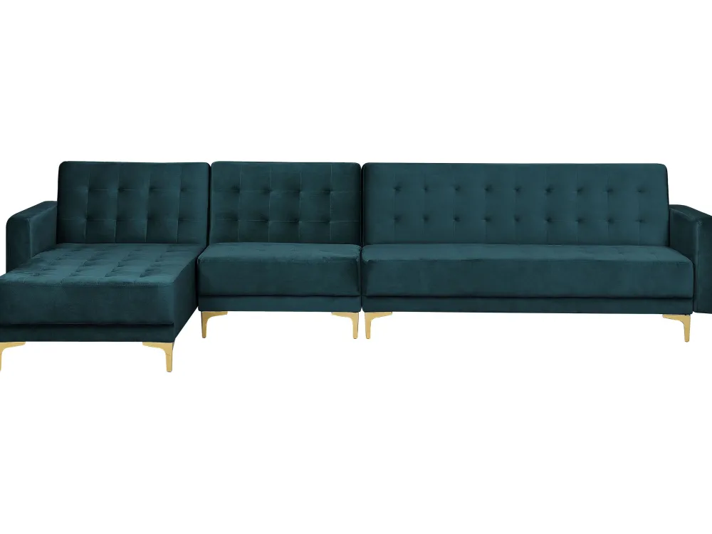 Fashion Beliani 5-Istuttava Kulmavuodesohva Sametti Oikeak. Sinivihrea Aberdeen