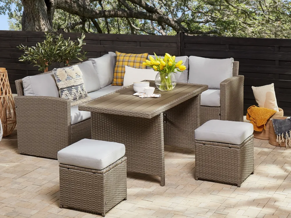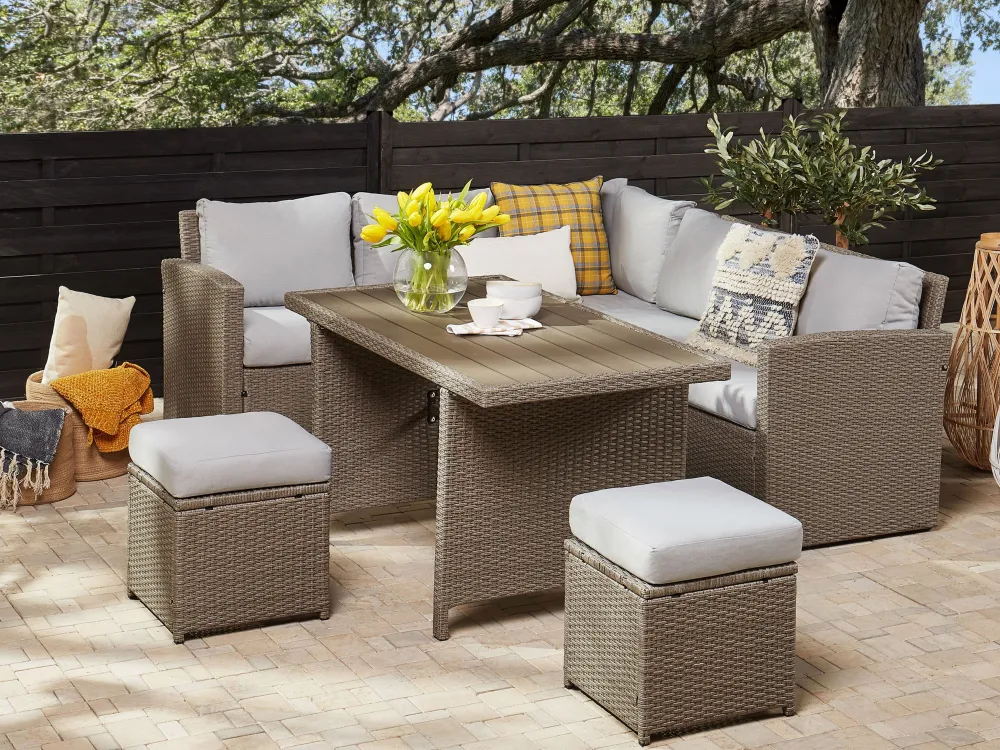 Fashion Beliani 5-Istuttava Ulkosohvaryhma Polyrottinki Ruskeanharmaa Bardi
