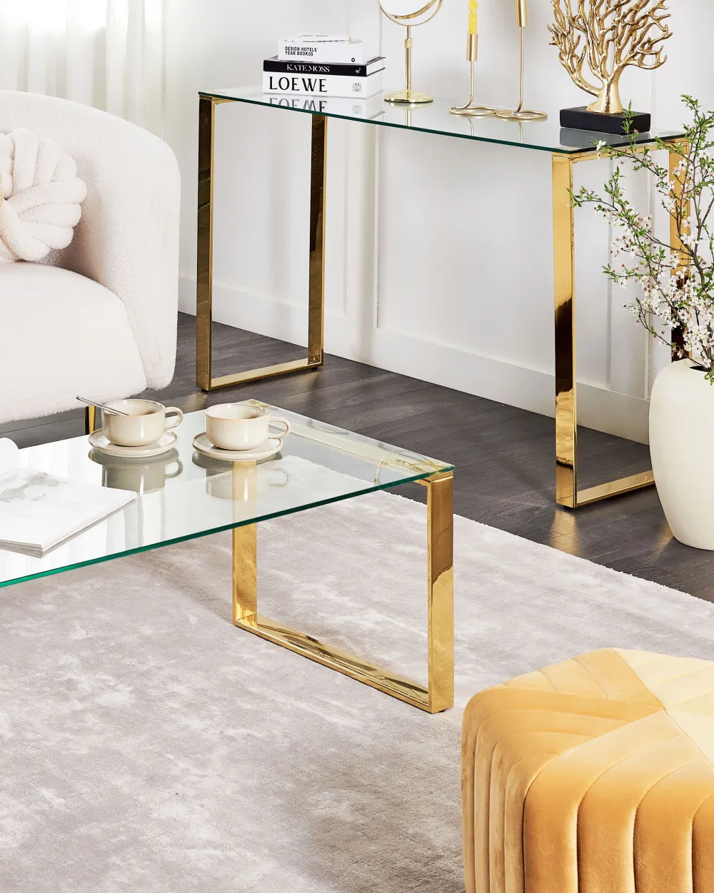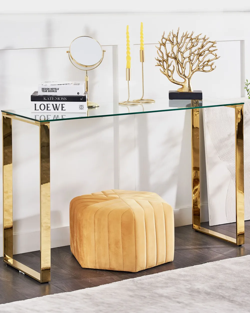 Fashion Beliani Konsolipoyta Lasitasolla Ruostumaton Teras Kulta Tilon