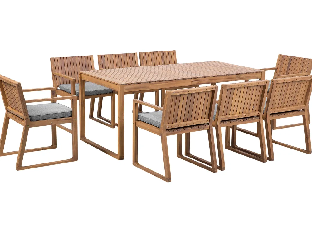 Hot Beliani 8-Istuttava Ulkoruokailuryhma Akaasia Vaalea Puu/Harmaa Sassari