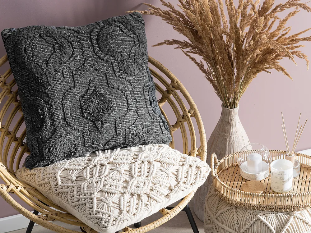 New Beliani Koristetyyny Puuvilla Harmaa Kohokuvioitu 45 X 45 Cm 2 Kpl Paika