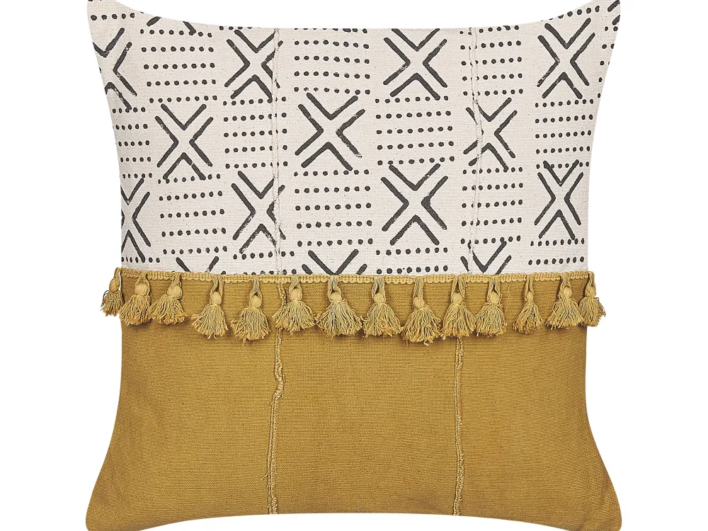 New Beliani Koristetyyny Puuvilla Valkoinen/Keltainen 45 X 45 Cm Woodi