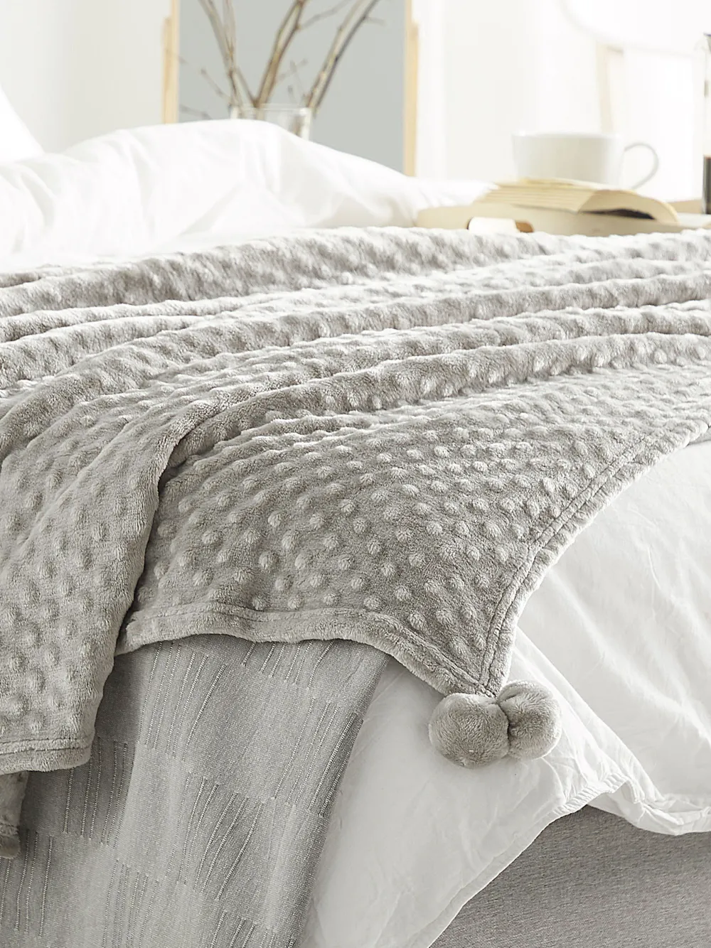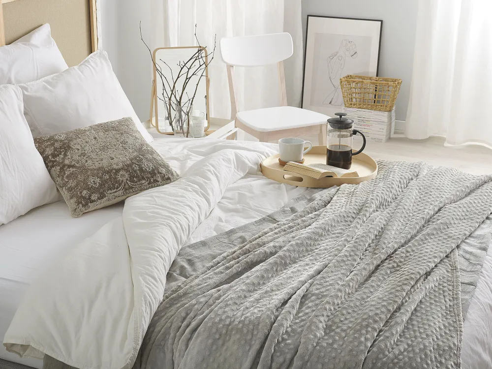 New Beliani Torkkupeitto Kangas Vaaleanharmaa 200 X 220 Cm Samur