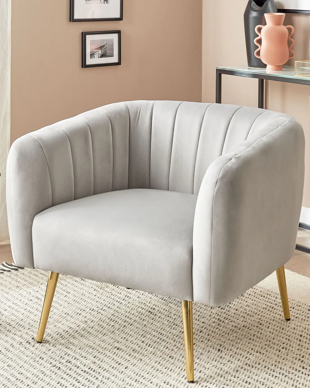 Nojatuolit<Beliani Nojatuoli Sametti Vaaleanharmaa Laconia
