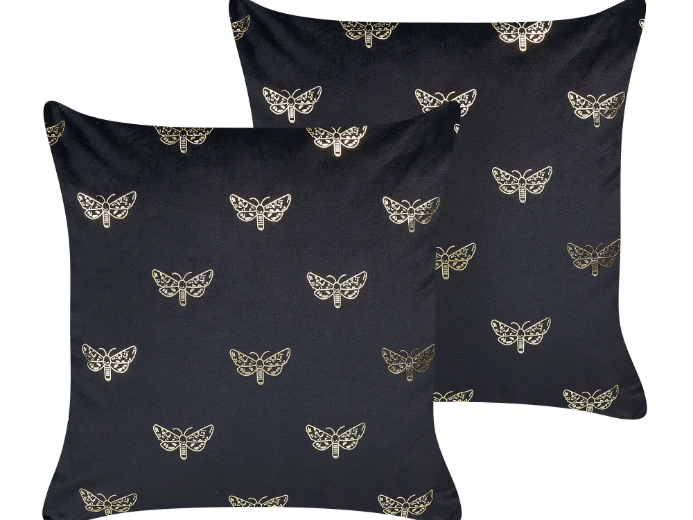 Online Beliani Koristetyyny Sametti Musta 45 X 45 Cm 2 Kpl Yuzuri