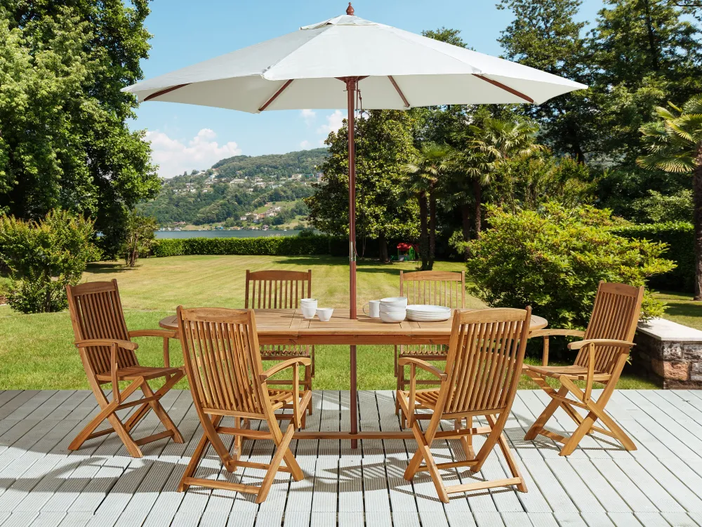 Outlet Beliani 6-Istuttava Ulkoruokailuryhma Aurinkovarjolla Vaalea Akasiapuu Maui