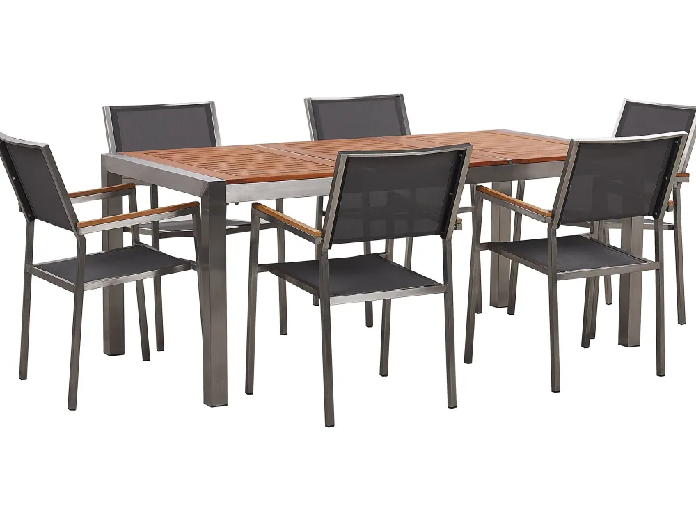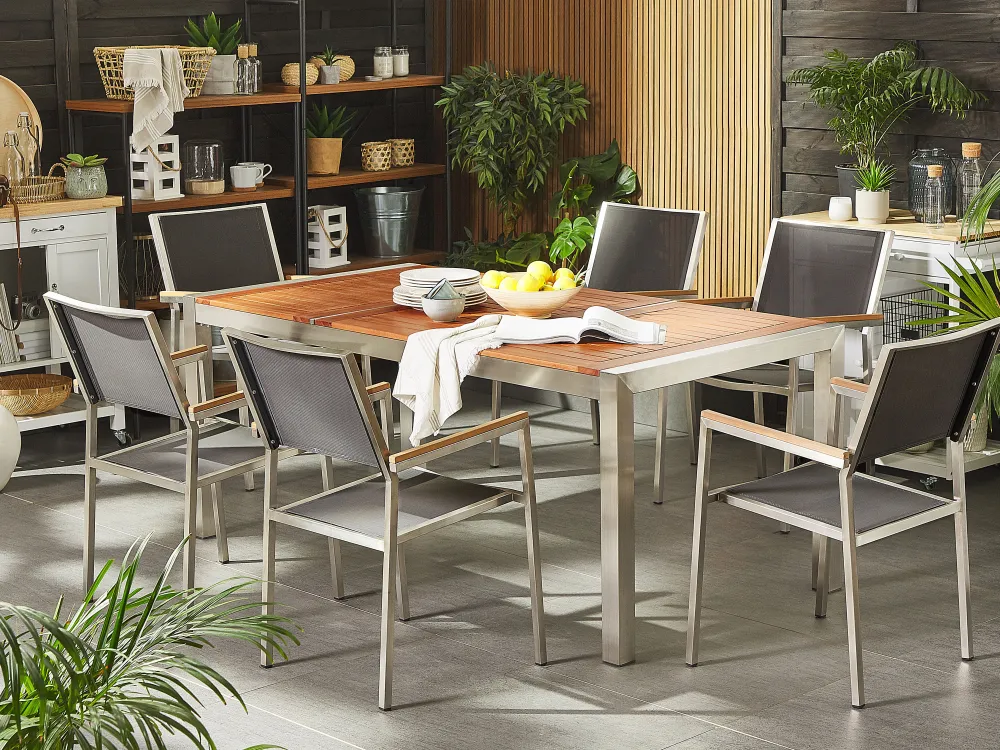 Outlet Beliani 6-Istuttava Ulkoruokailuryhma Eukalyptuspuutaso Tekstiilituolit Harmaa Grosseto