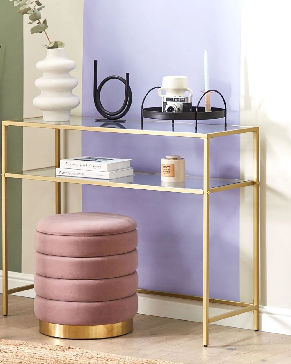 Pöydät<Beliani Konsolipoyta Lasitasolla Rauta Kulta Aline