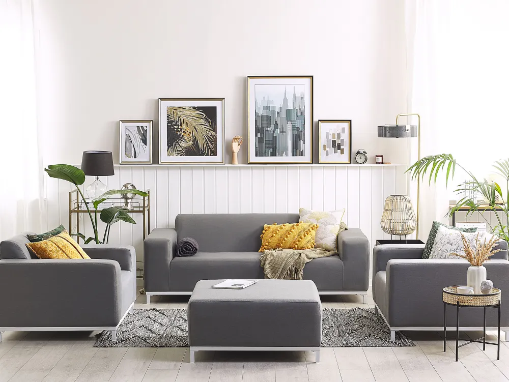 Store Beliani 5-Istuttava Ulkosohvaryhma Kangas Harmaa/Valkoinen Rovigo