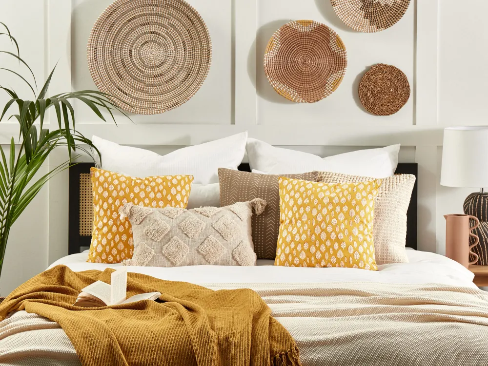 Tekstiilit<Beliani Koristetyyny Puuvilla Sinapinkeltainen 45 X 45 Cm 2 Kpl Ginnala