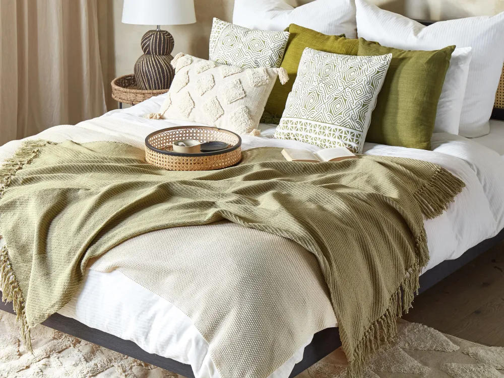Tekstiilit<Beliani Torkkupeitto Puuvilla Oliivinvihrea 125 X 150 Cm Yarsa