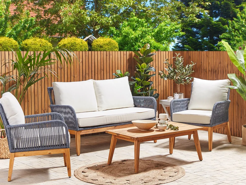 Ulkokalusteet<Beliani 4-Istuttava Ulkosohvaryhma Akasiapuu Valkoinen/Sininen Merano Ii