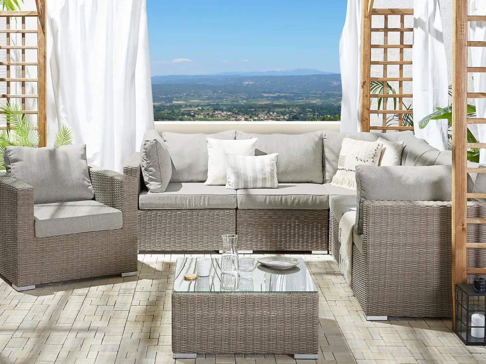Ulkokalusteet<Beliani 6-Istuttava Ulkosohvaryhma Polyrottinki Oikeak. Ruskeanharmaa Contare