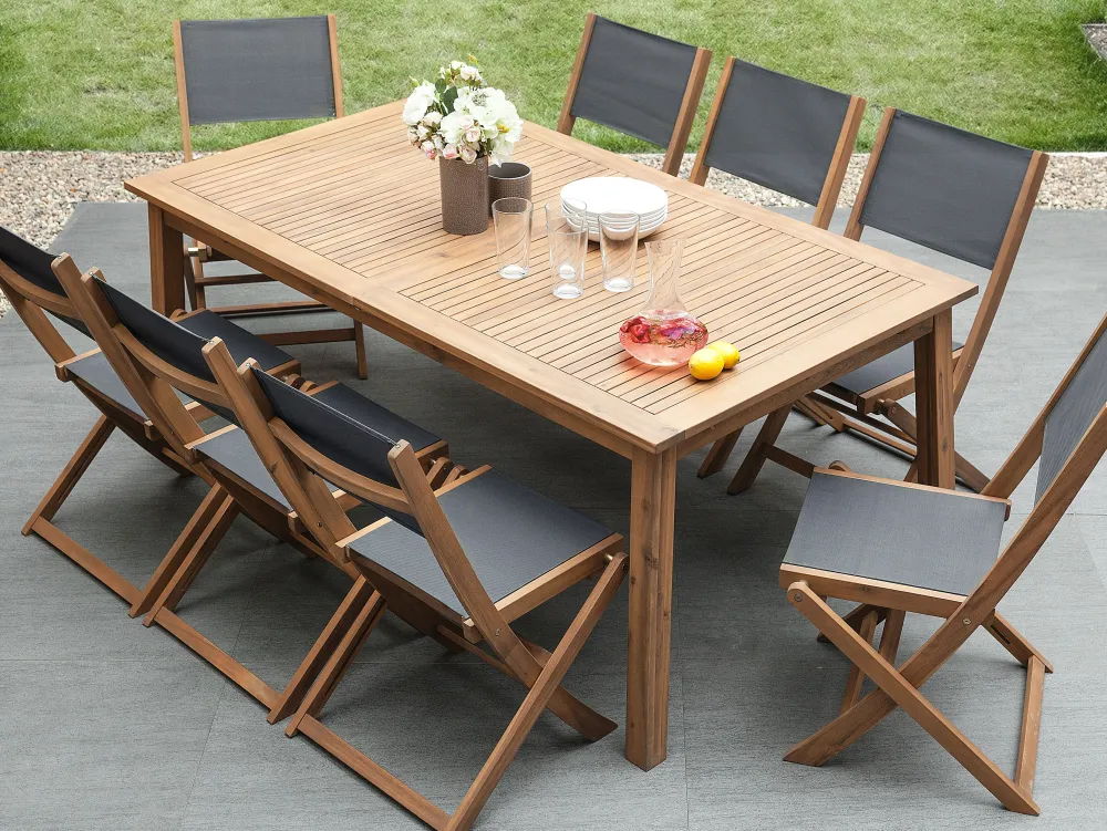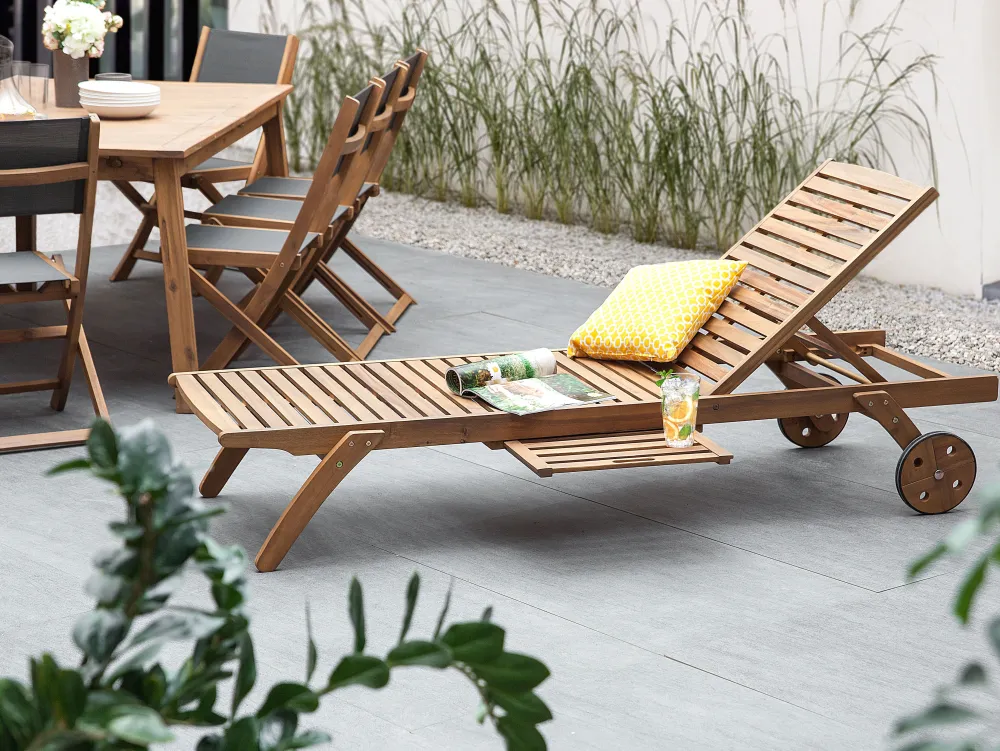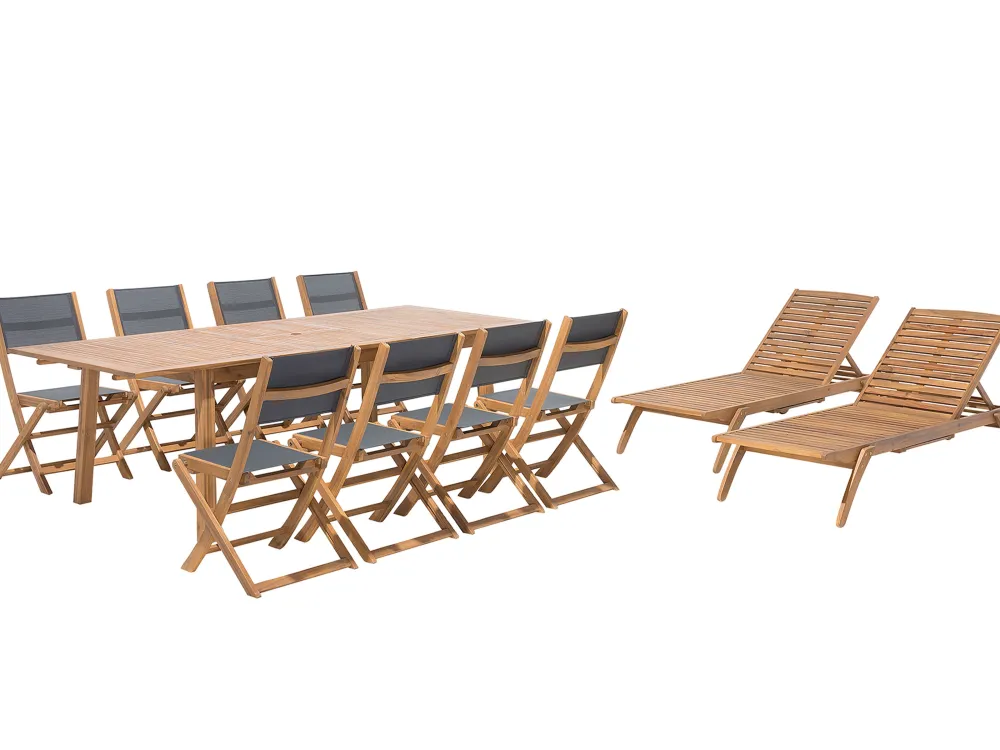 Ulkokalusteet<Beliani 8-Istuttava Ulkoruokailuryhma Ja Aurinkotuolit Akaasia Vaalea Puu Cesana