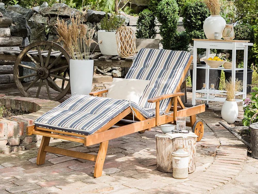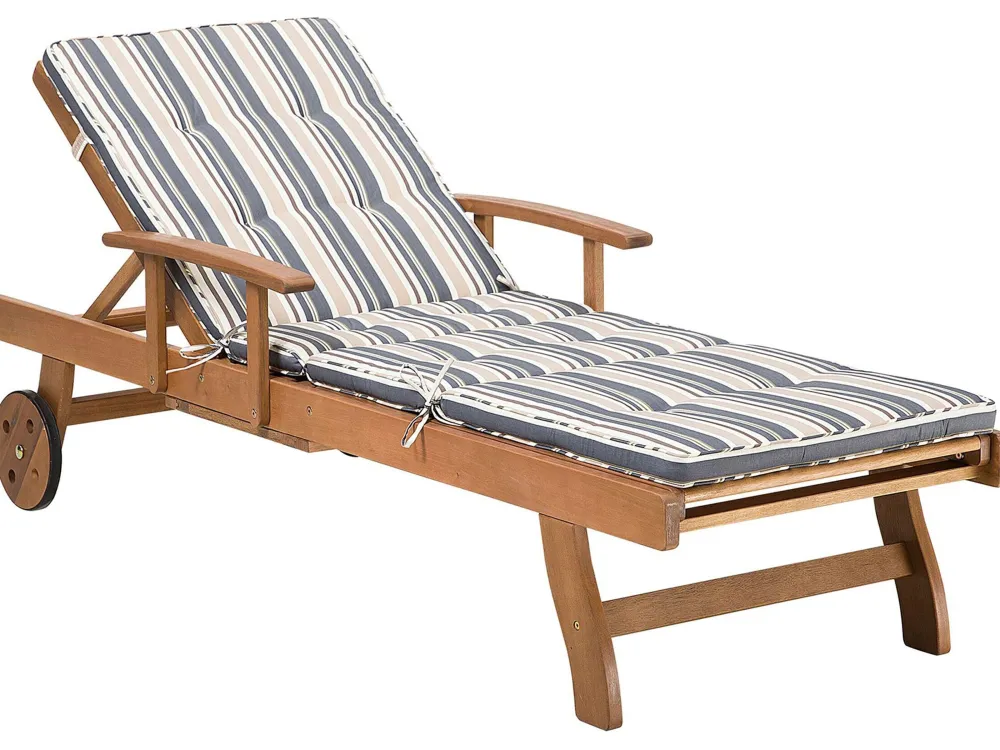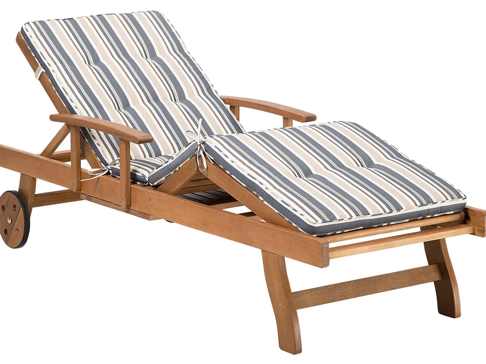 Ulkokalusteet<Beliani Akaasiapuinen Aurinkotuoli Raidallisella Pehmusteella Java