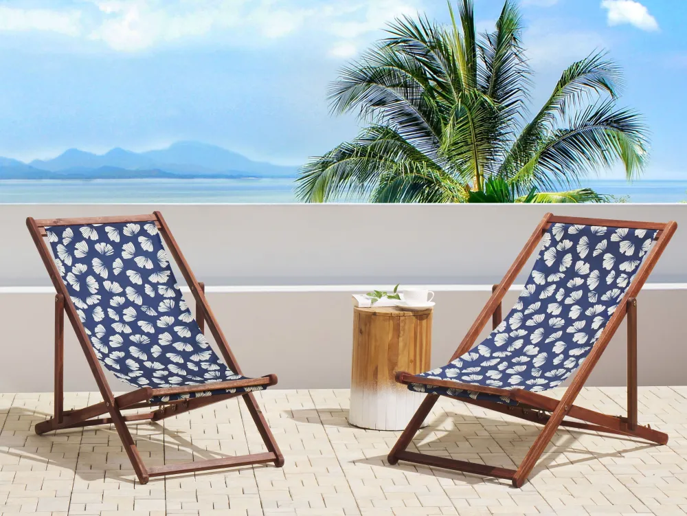 Ulkokalusteet<Beliani Aurinkotuoli Tumma Akaasia Vaihtokankaat Luonnonvalkoinen/Laivastonsininen Kukat 2 Kpl Anzio