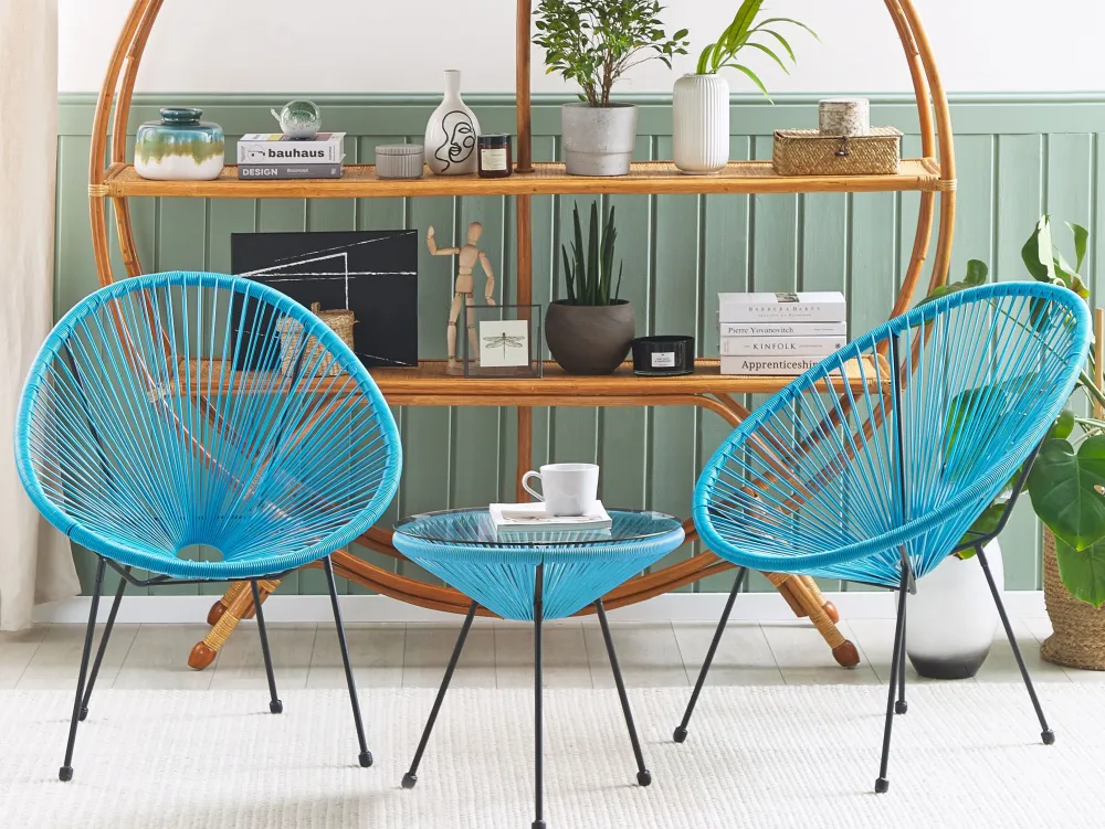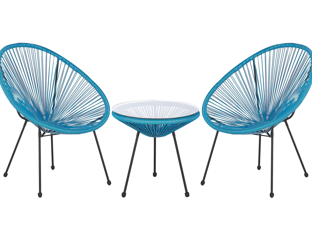 Ulkokalusteet<Beliani Parvekekalustesetti Rottinkinen Sininen Acapulco Ii