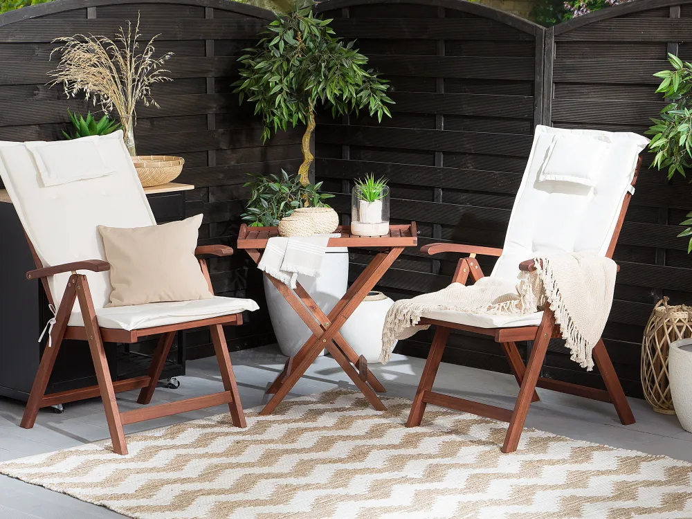 Ulkokalusteet<Beliani Poyta Ja 2 Tuolia Luonnonvalkoisilla Tyynyilla Toscana