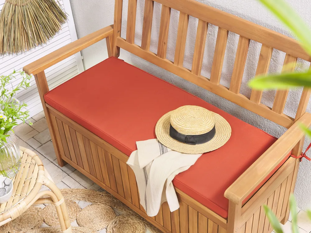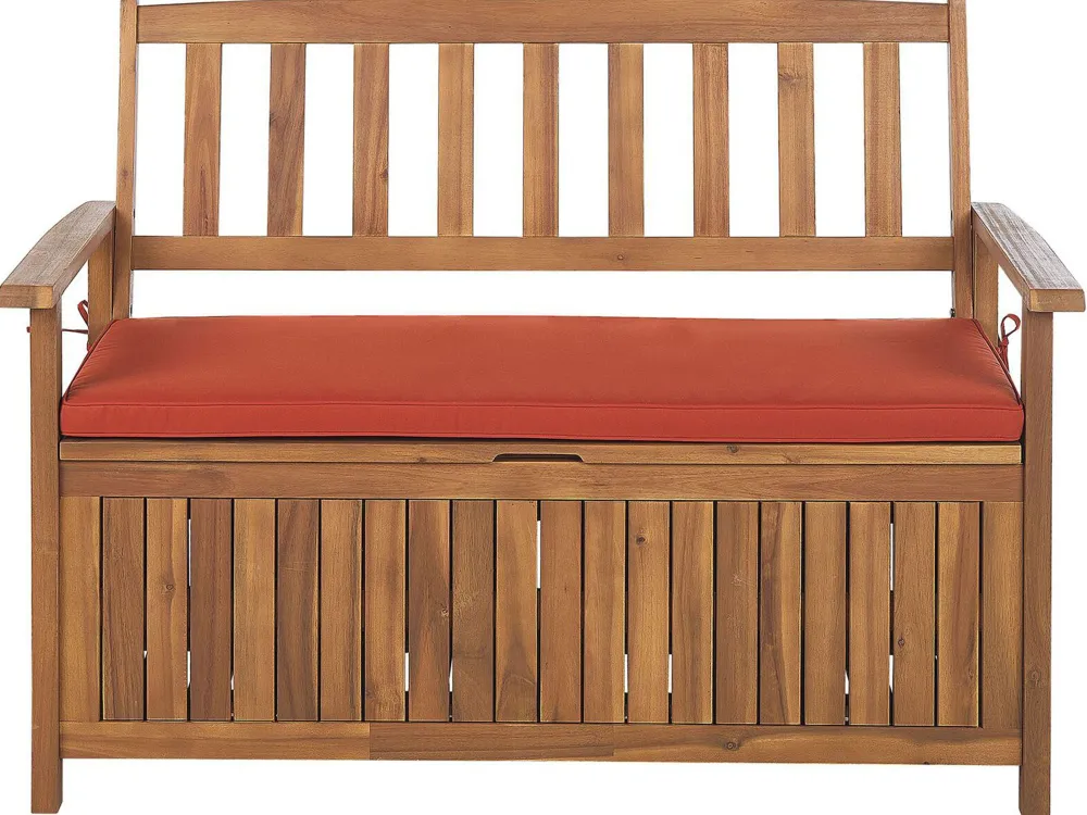 Ulkokalusteet<Beliani Puutarhapenkki Akasiapuu Säilytystila Punainen 120 Cm Sovana