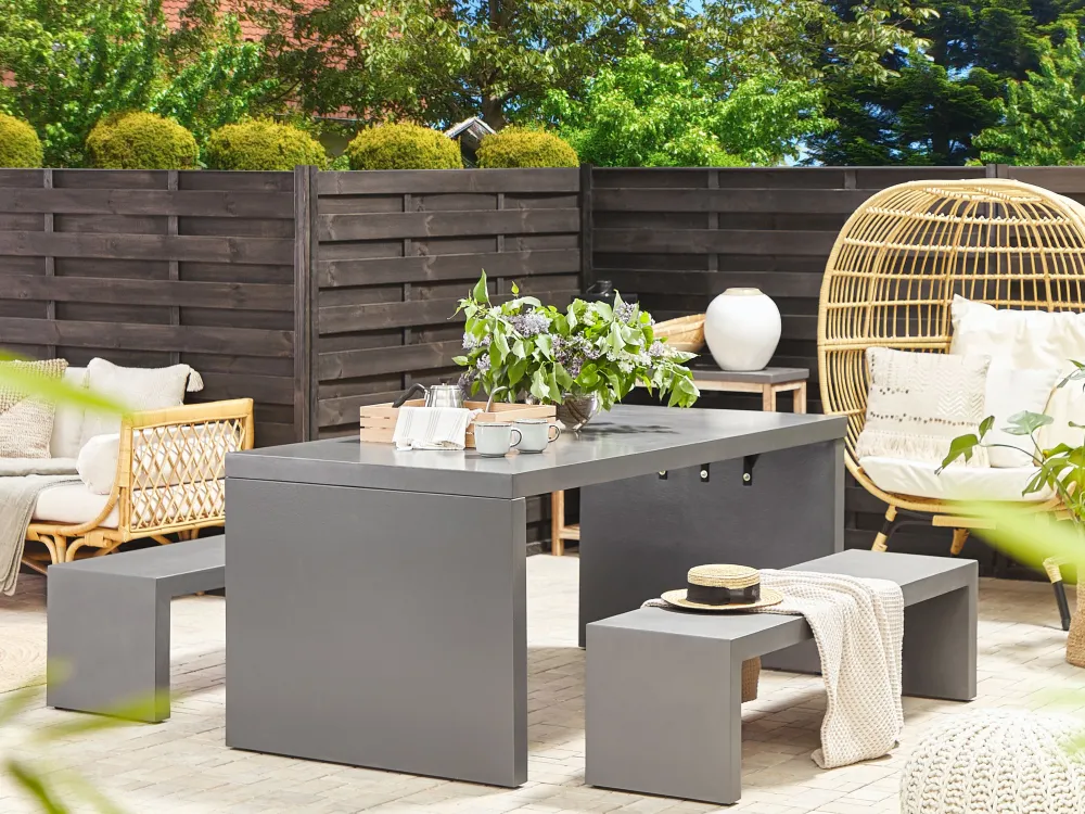 Ulkokalusteet<Beliani Puutarhapoyta Kuitusementti U-Muoto Harmaa 180 X 90 Cm Taranto