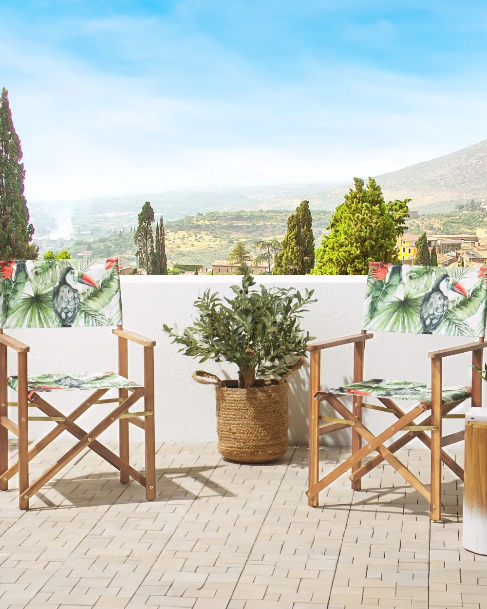 Ulkokalusteet<Beliani Puutarhatuoli Vaalea Akasiapuu Vaihtokangas 2 Kpl Luonnonvalkoinen/Tukaanikuvio 2 Kpl Cine